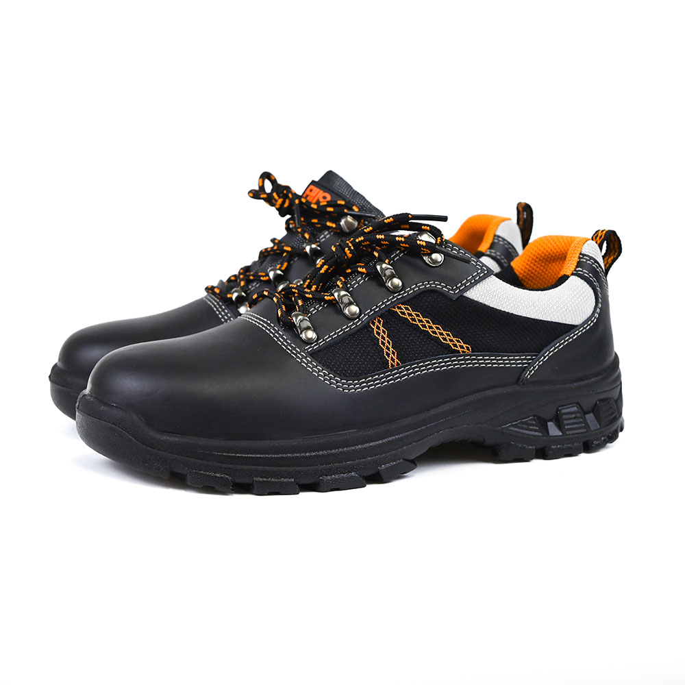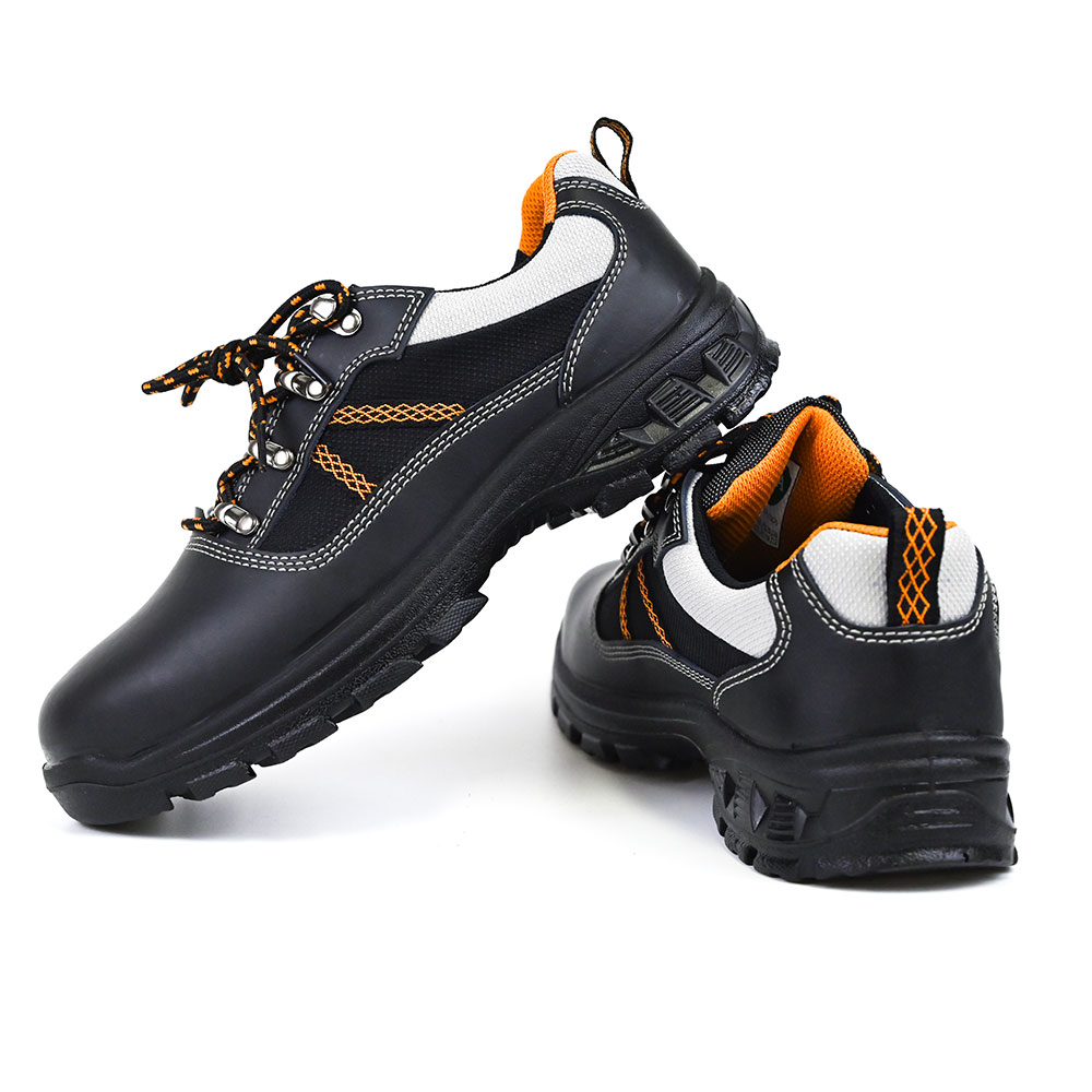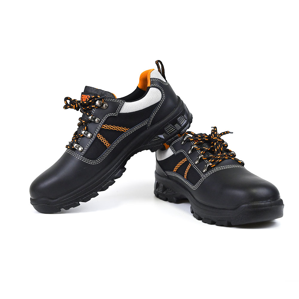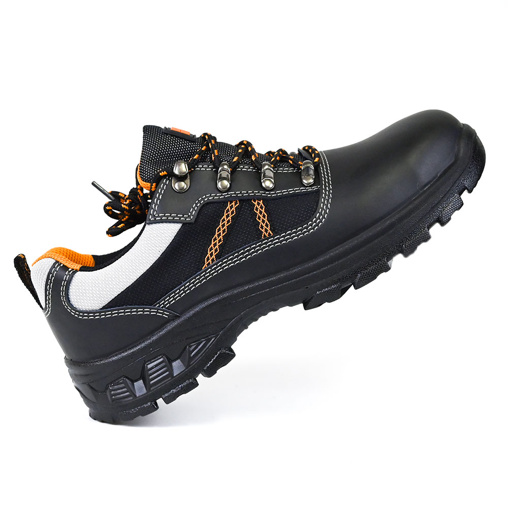 These safety shoes are made with high-quality plain leather, suede, and breathable mesh lining, ensuring durability and comfort.
