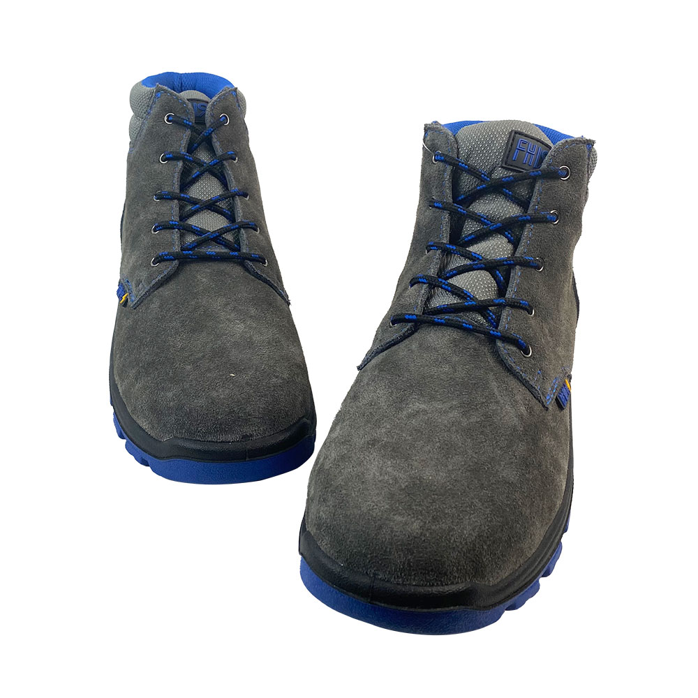 Made of grey suede leather, offering comfort and breathability.