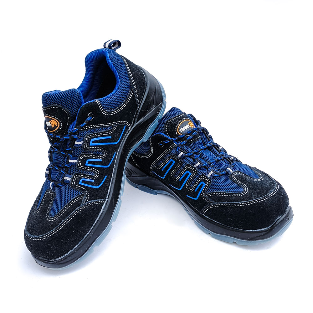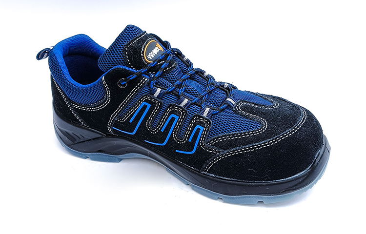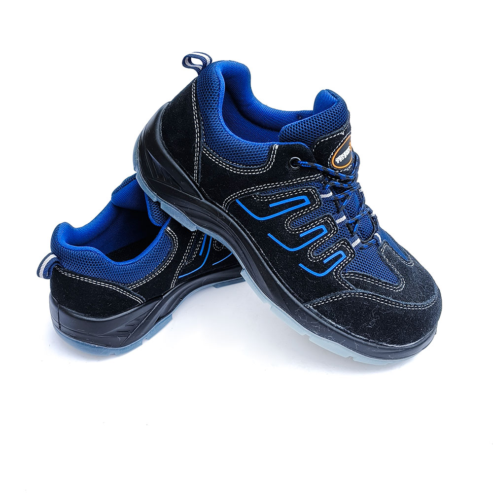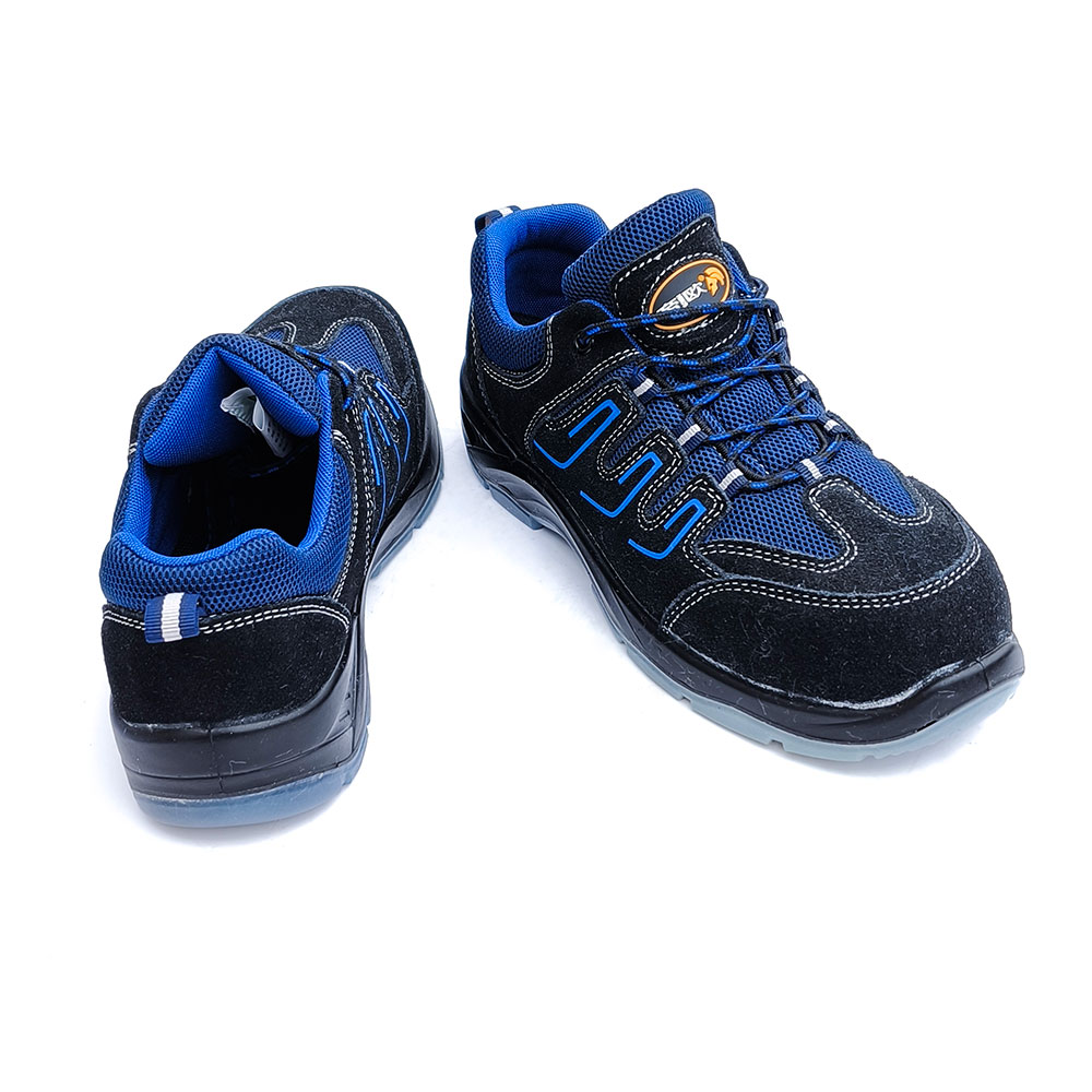 AC6017 features a black suede leather upper with blue mesh panels for durability and breathability.