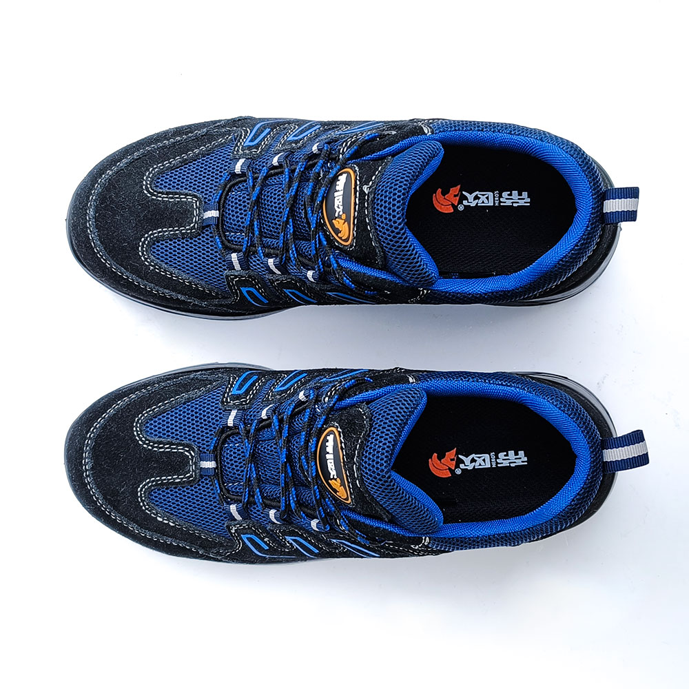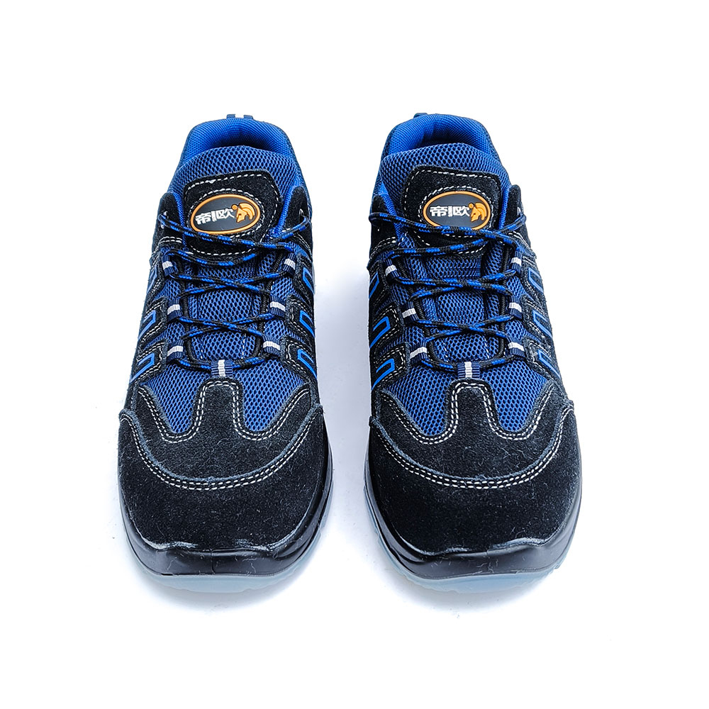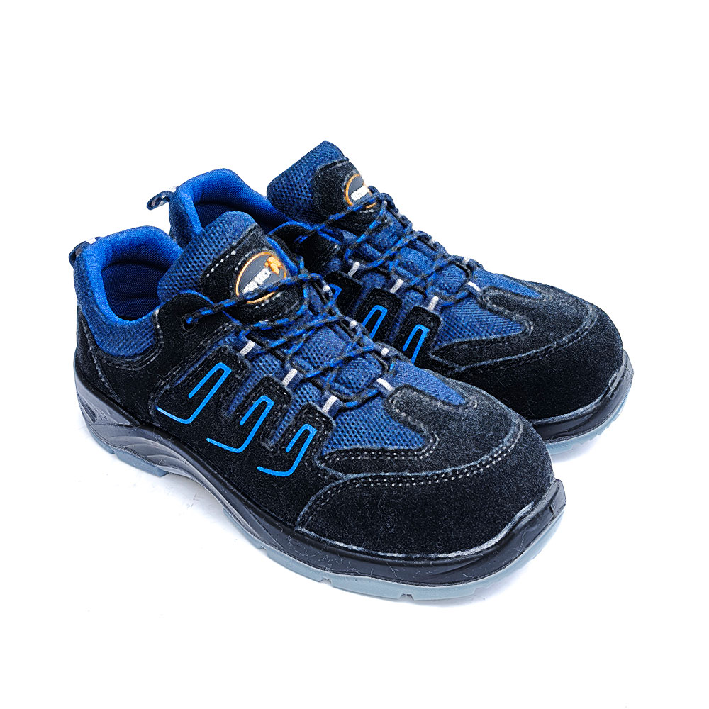 AC6017 features a black suede leather upper with blue mesh panels for durability and breathability.