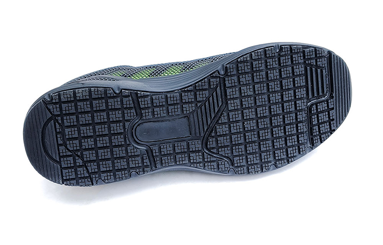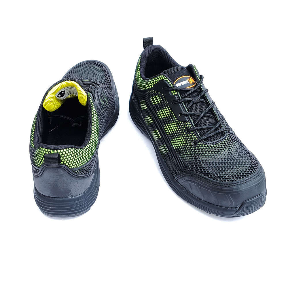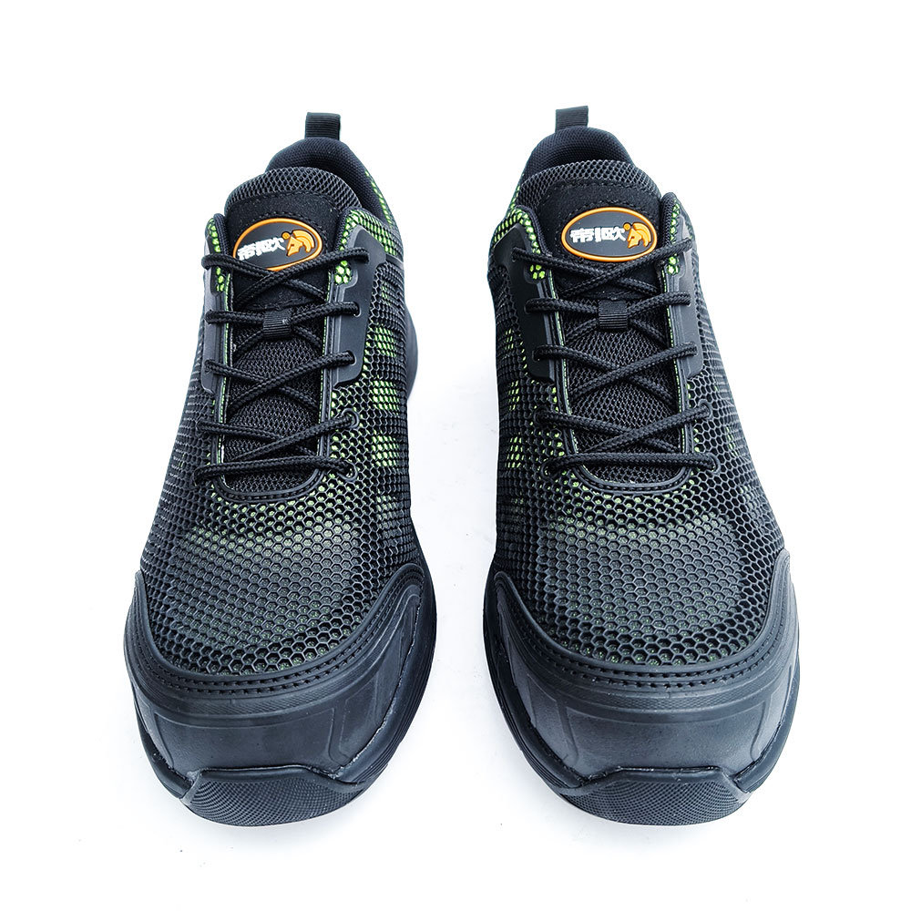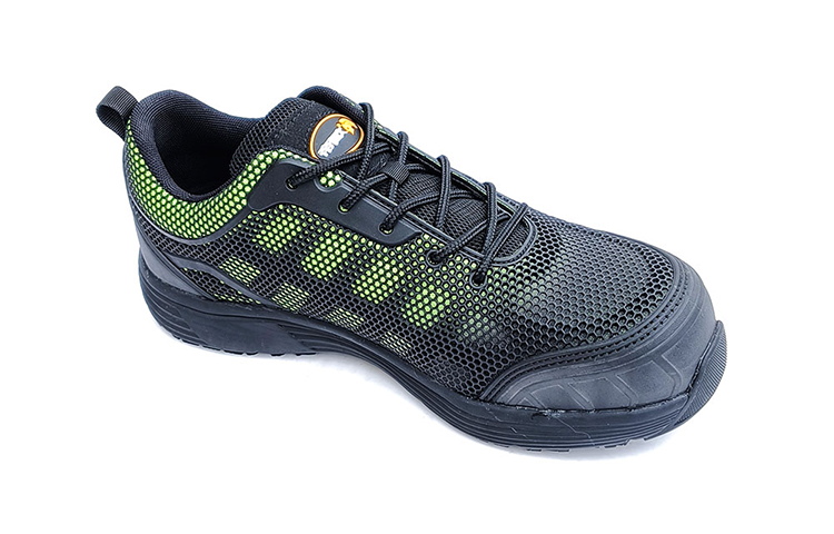 AC6017 features a black breathable mesh upper with green mesh accents for lightweight comfort and ventilation.