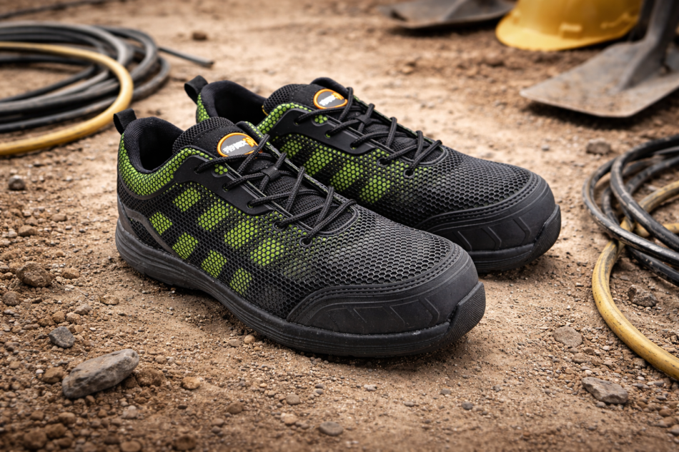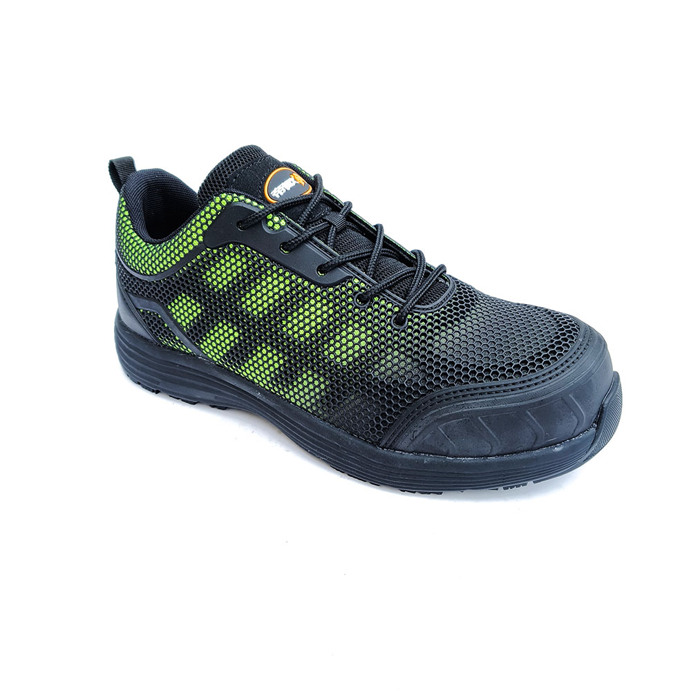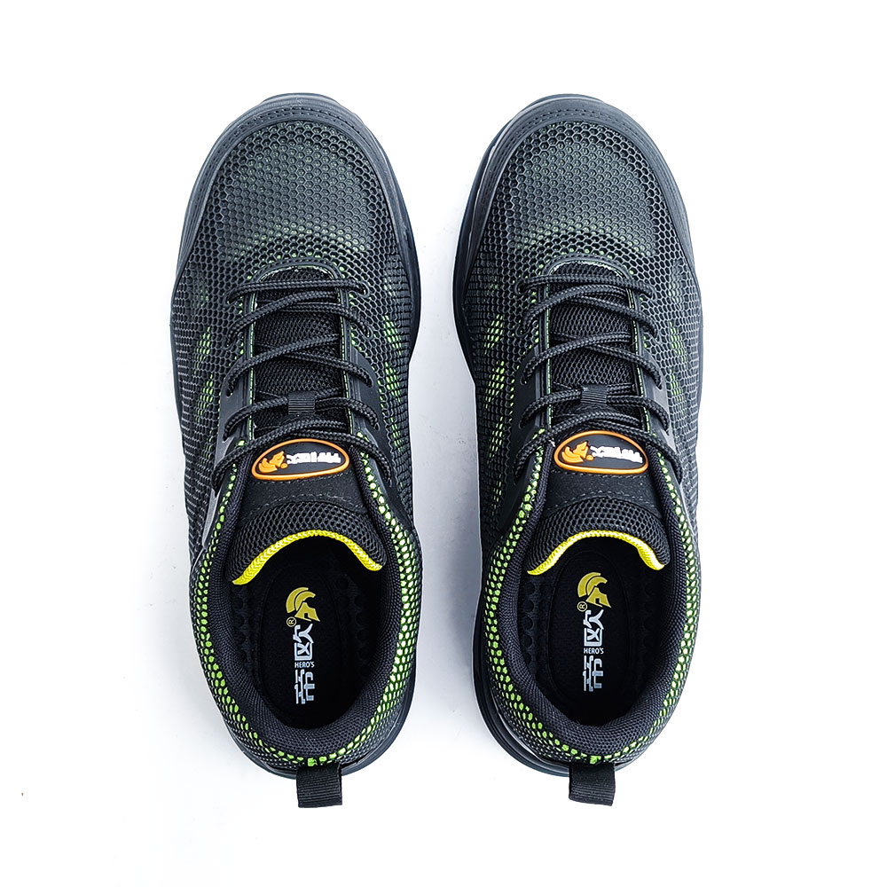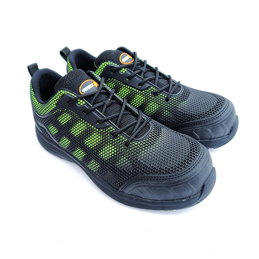 AC6017 features a black breathable mesh upper with green mesh accents for lightweight comfort and ventilation.