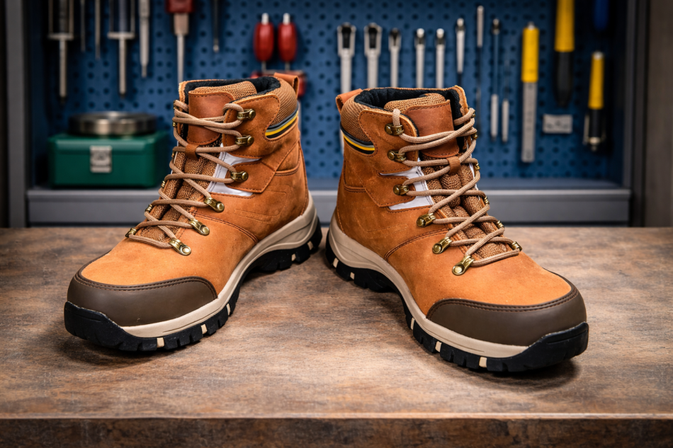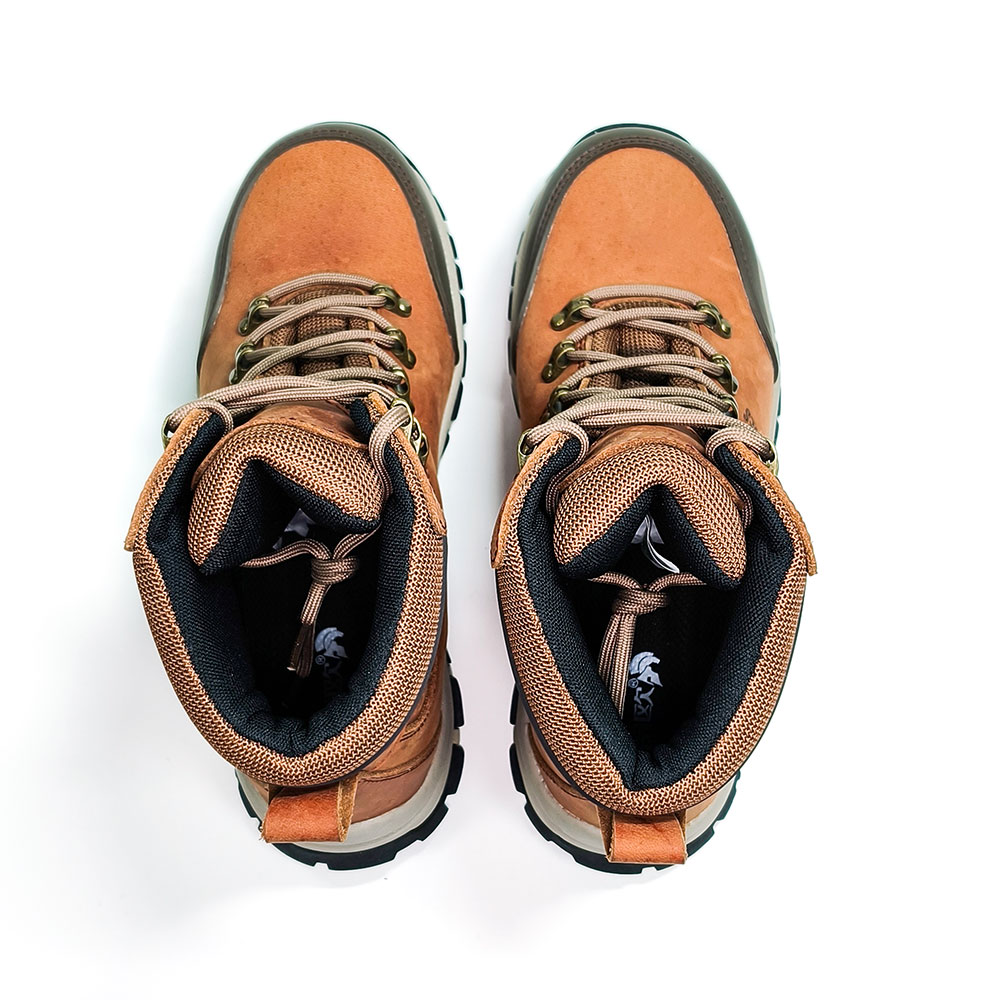 Premium nubuck leather (yellow): softer than full-grain leather, breathable, high tensile strength