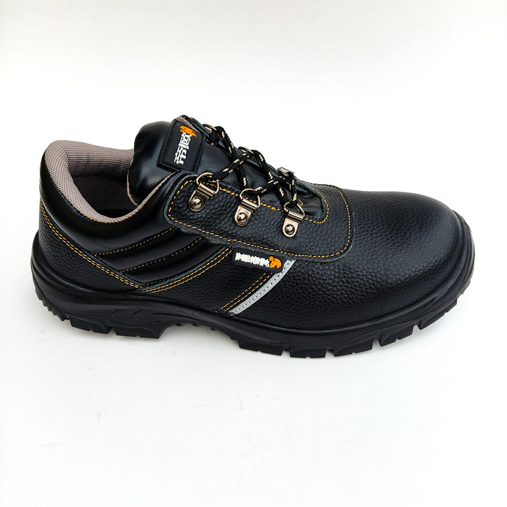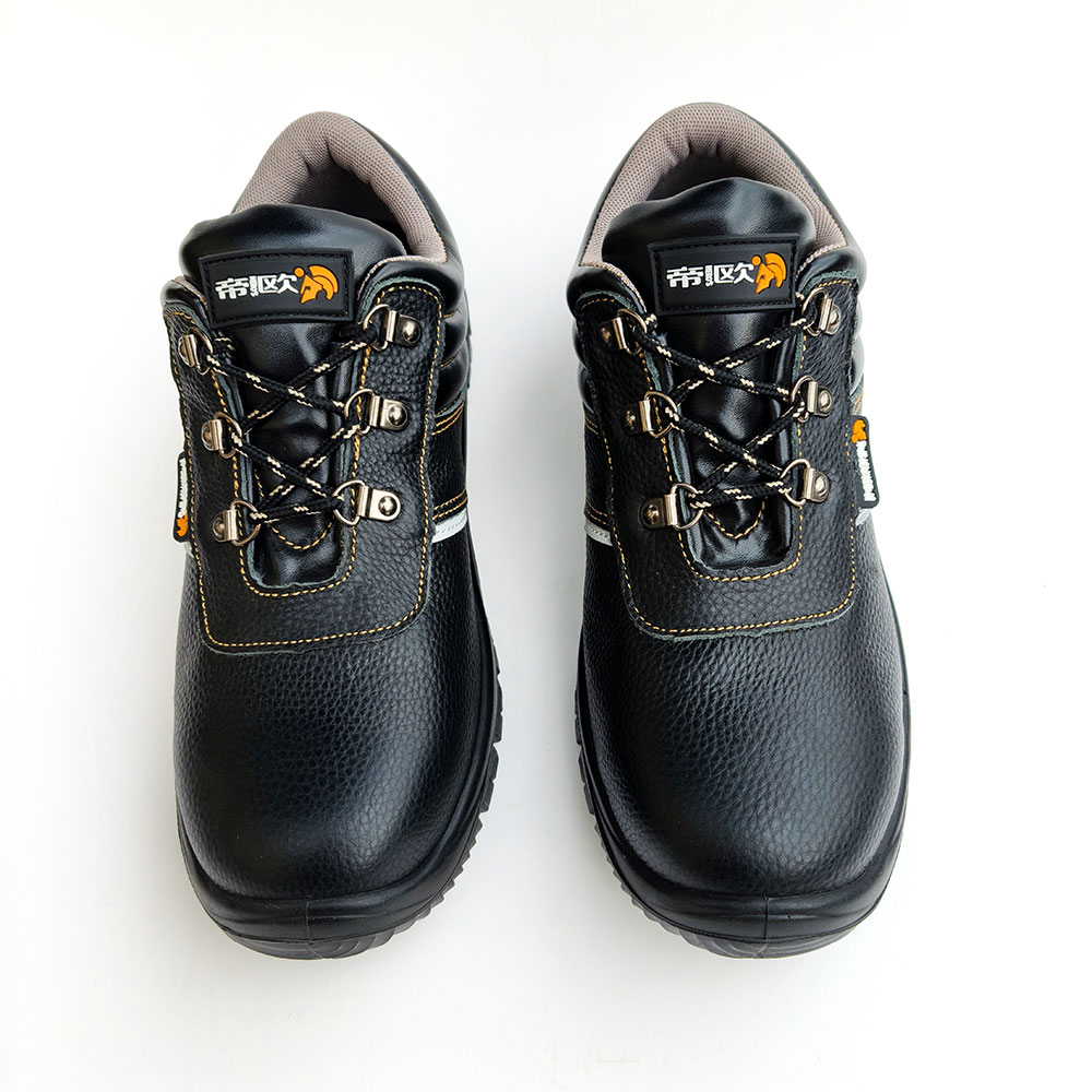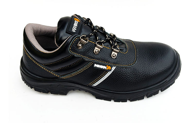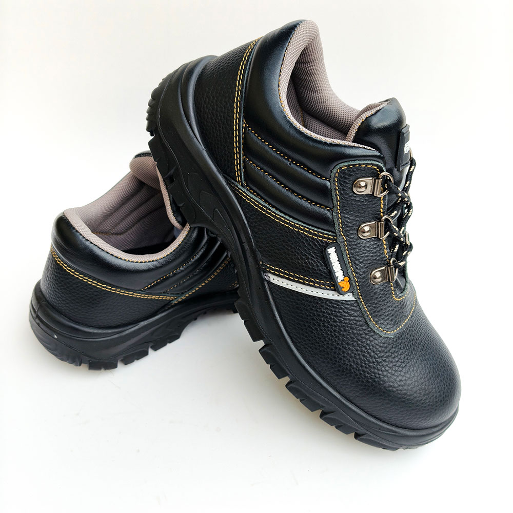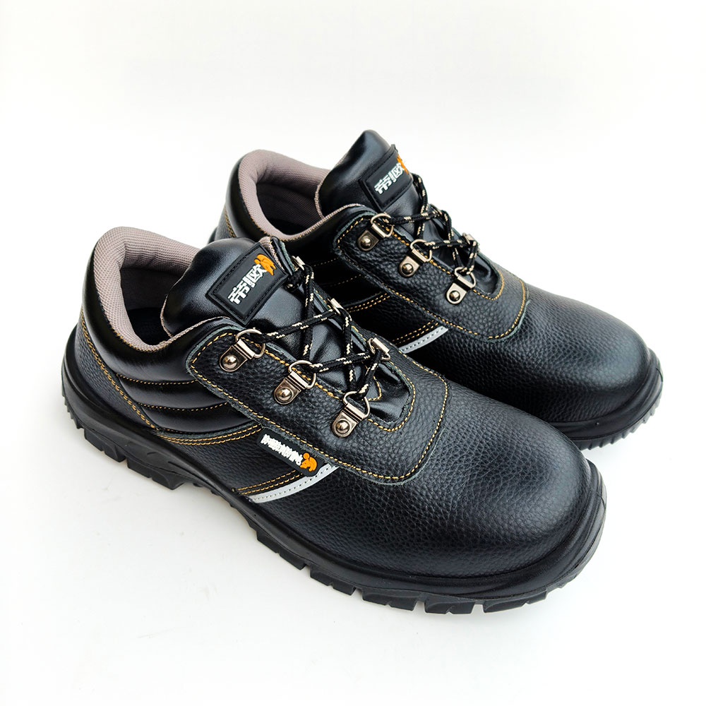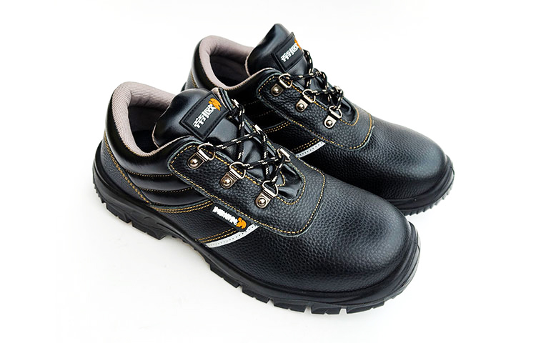 AC6201 Low-Cut Black Leather Steel Toe Safety Shoes with Gusseted Tongue PU/PU Dual Density Sole Oil and Chemical Resistant