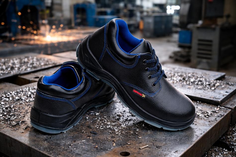 PU/PU dual-density sole, providing shock absorption, slip resistance, and durability