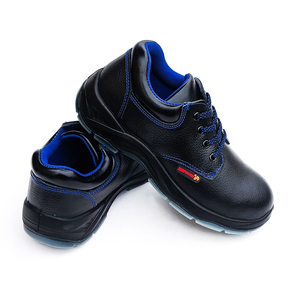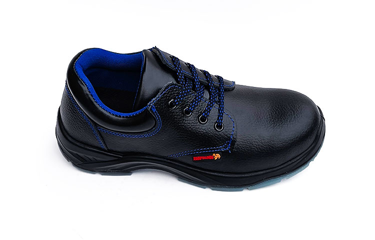 Made of low-cut black split leather, offering durability and cost-effective performance.