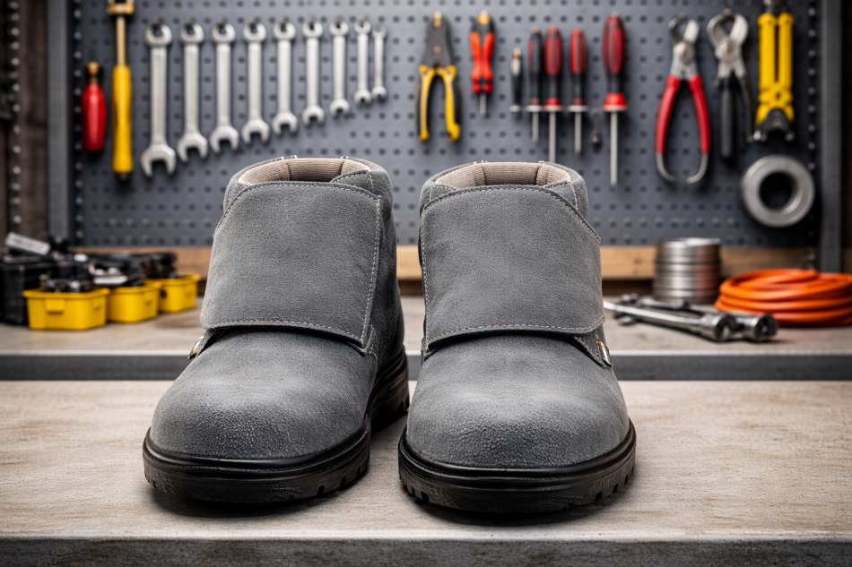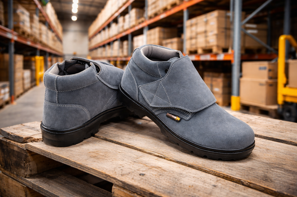 It uses a PU outsole, which is lightweight, flexible, and designed for everyday industrial use.