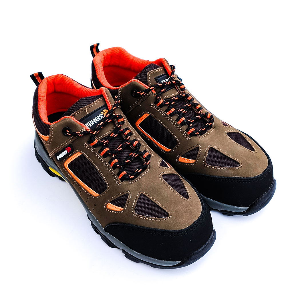 AC6008 Low-cut nubuck leather safety shoes with two-tone rubber outsole.
