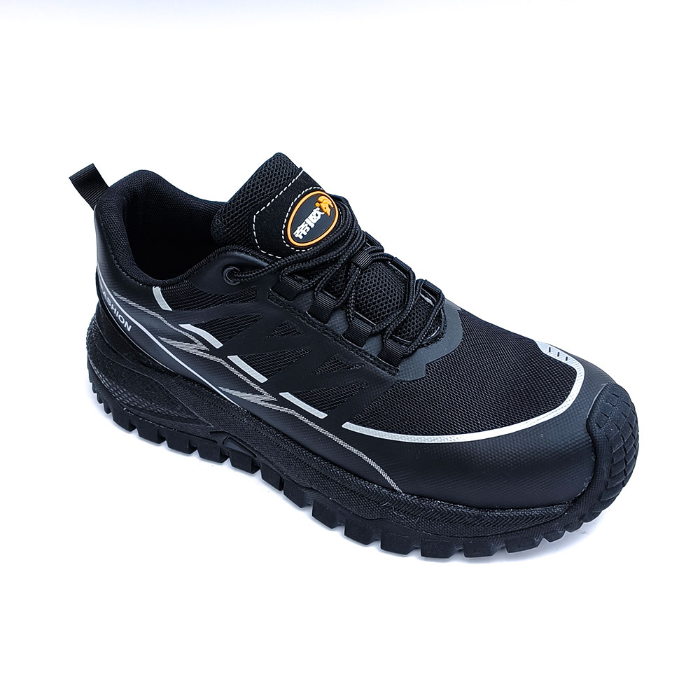 AC6012 Low-cut black leather and mesh safety shoes with two-tone rubber outsole