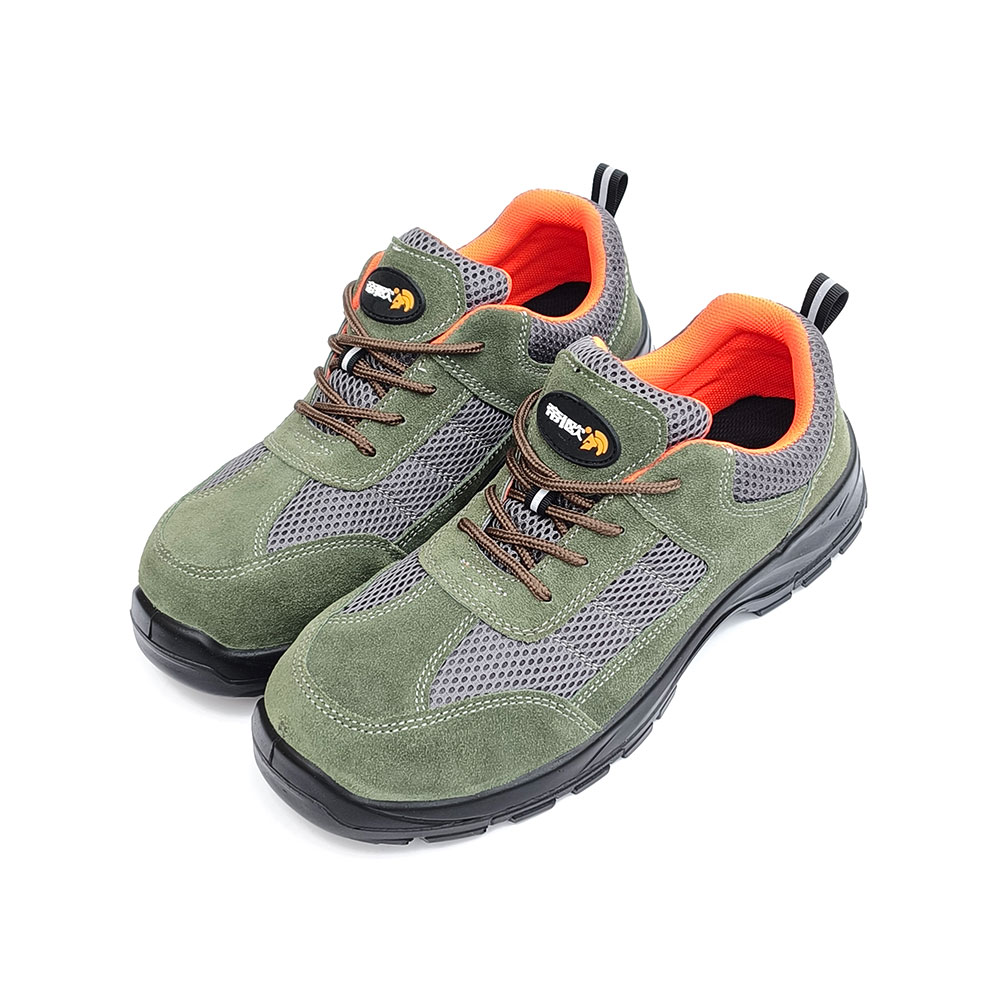 AC6013 Low-cut green leather and mesh safety shoes with PU outsole