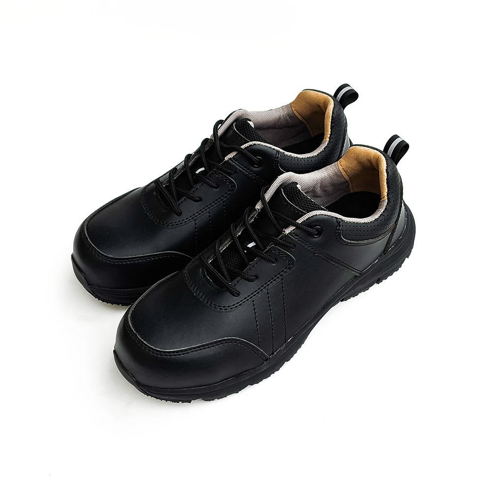 AC6218 Low-Cut Black Leather Steel Toe Safety Shoes PU/PU Dual Density Sole Oil and Chemical Resistant