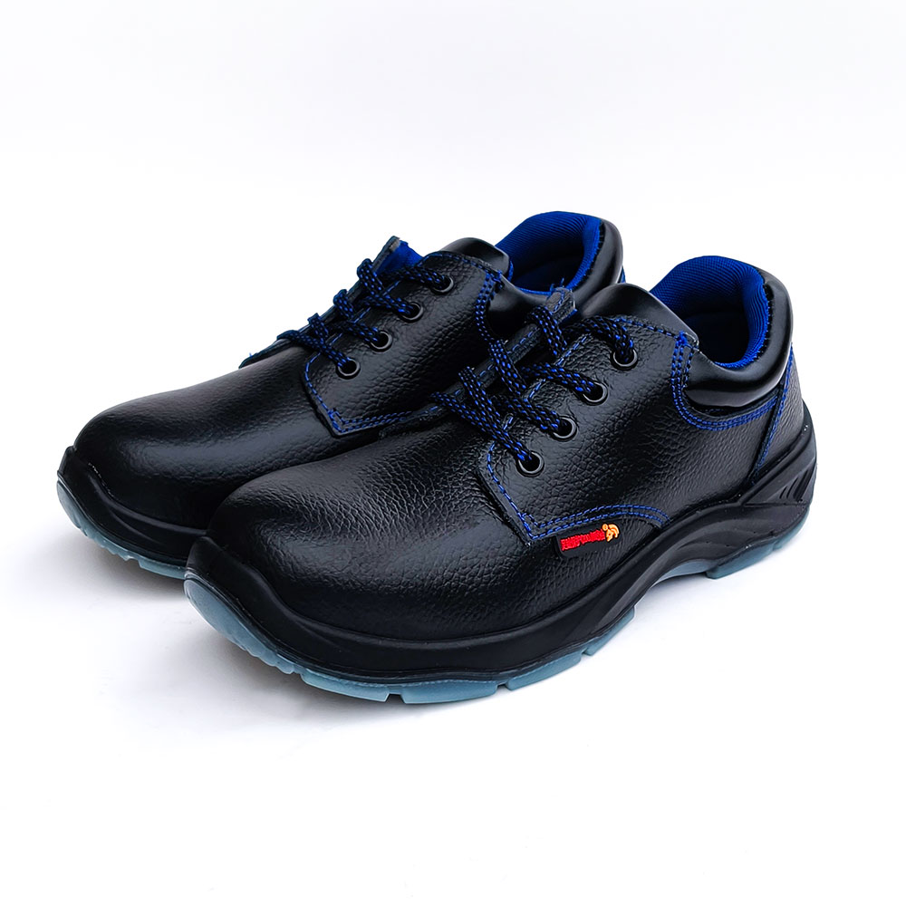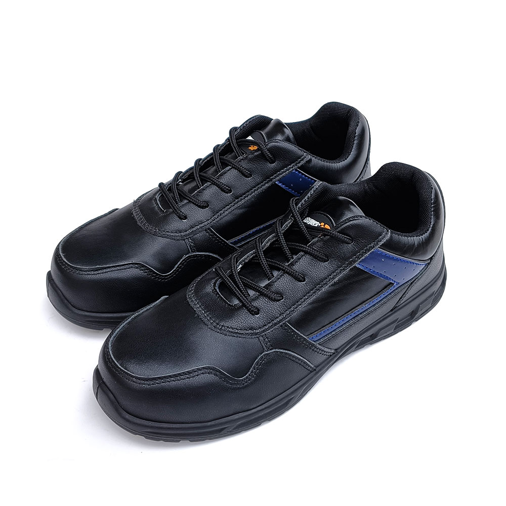 AC6004 Black with subtle blue accents Leather Steel Toe Safety Shoes with PU/PU Dual Density Sole Oil and Acid Resistant Work Shoes