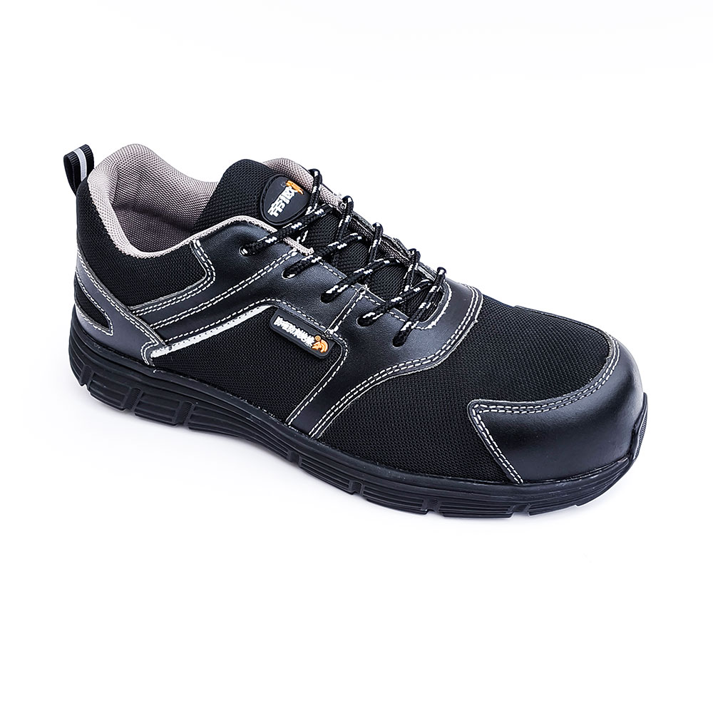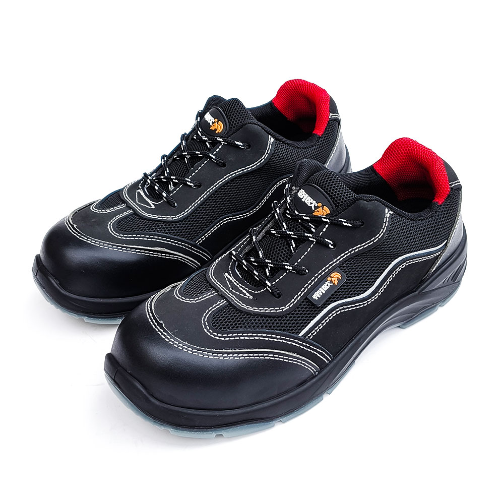 AC6101 Low-cut black leather with breathable mesh, white contrast stitching Steel Toe Safety Shoes