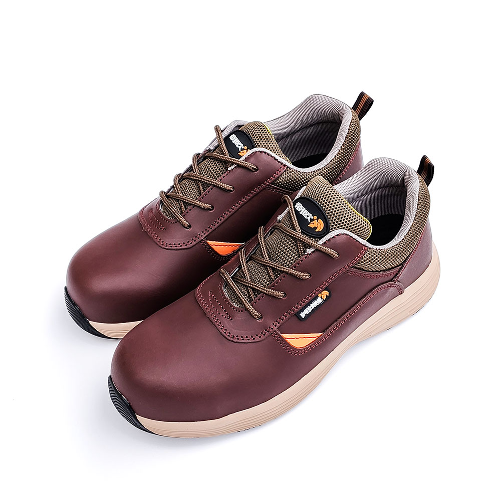 AC6206 Low-cut brown nubuck leather safety shoes with steel toe, puncture-resistant midsole, and electrical insulation Steel Toe PU/PU Dual Density
