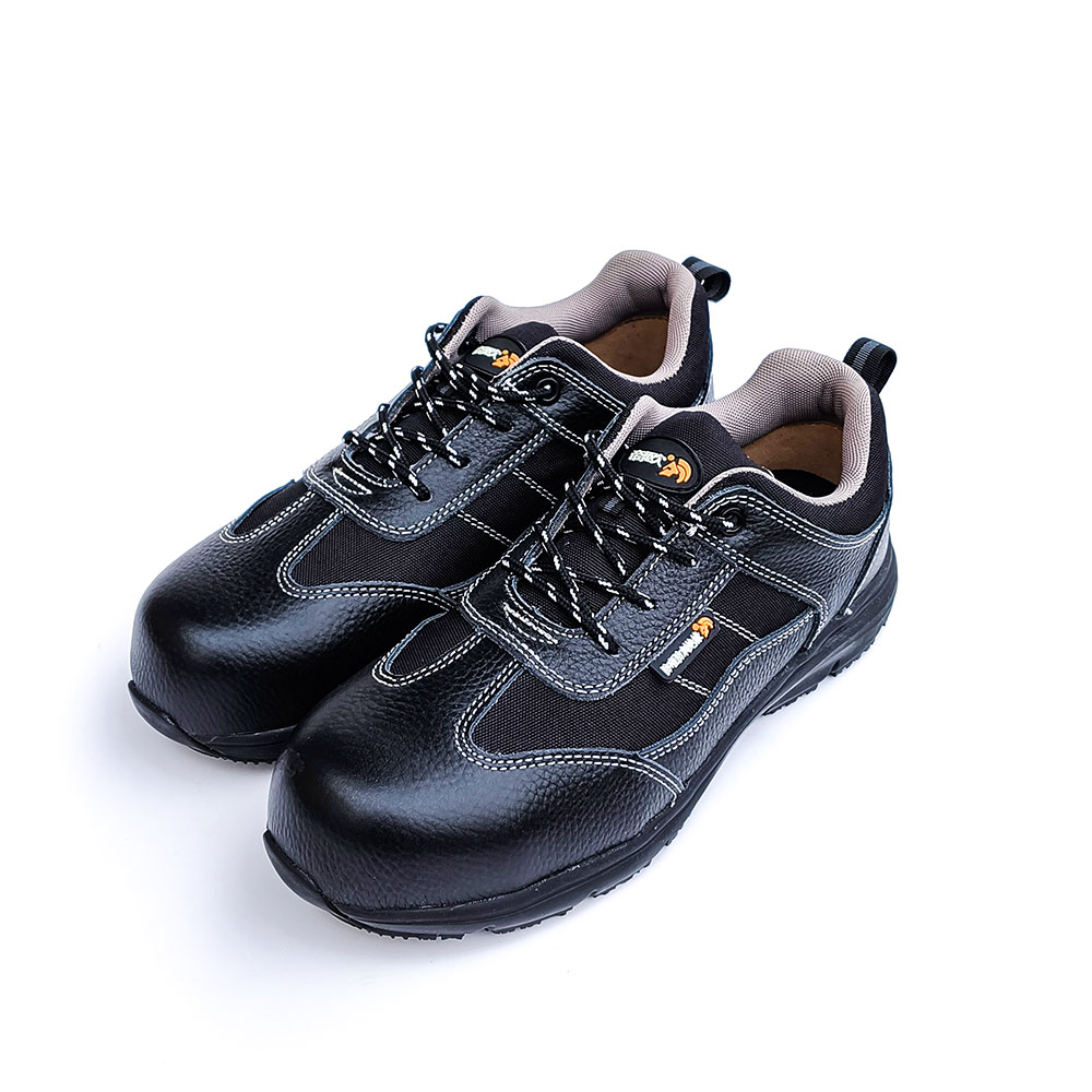 AC6003 Low-cut black MOD outsole Steel Toe Safety Shoes PU/PU Dual Density Sole Breathable Buffalo Leather Anti-Smash Oil and Chemical Resistant