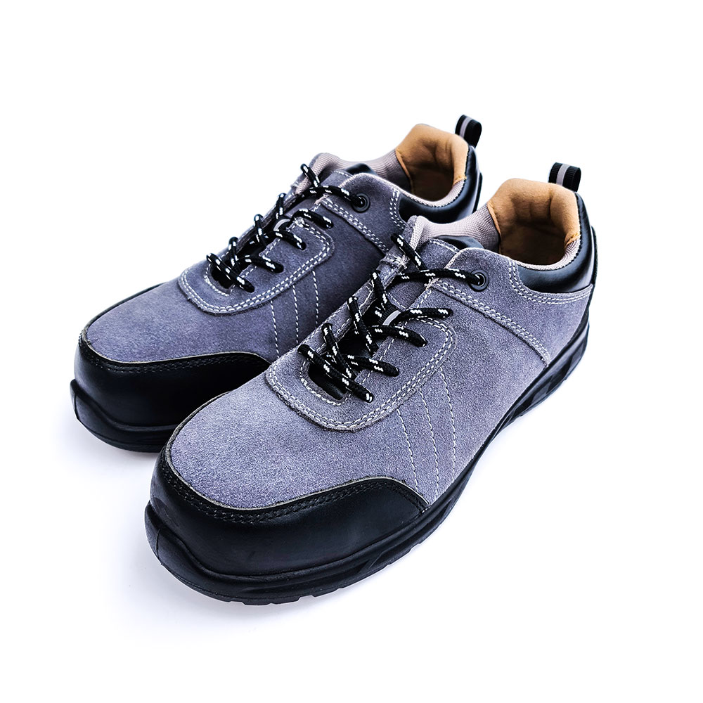AC6007 Low-cut Grey suede leather upper with black toe cap safety shoes with PU outsole